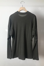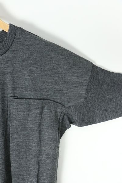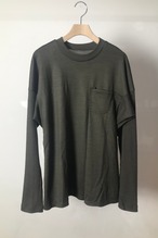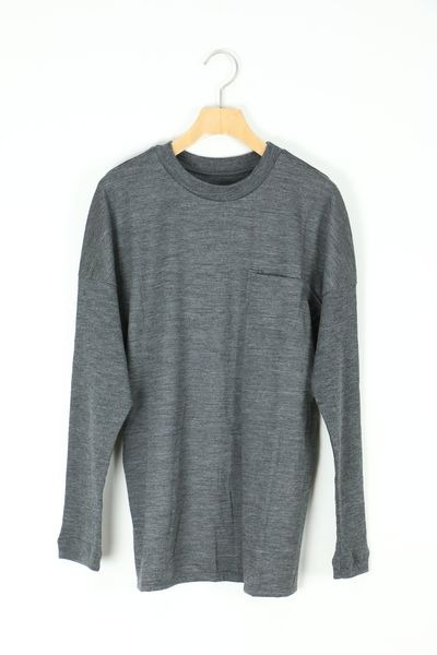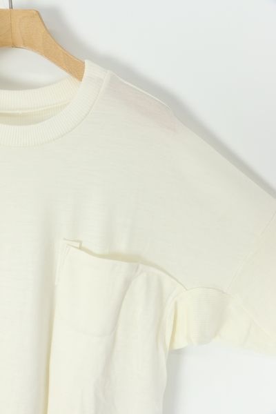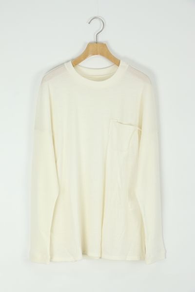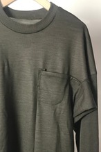 深いタックを利用した胸ポケットが付いたクルーネック長袖カットソー。