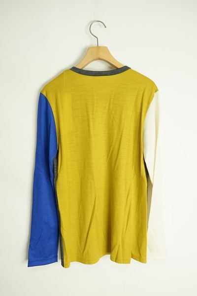 ウール天竺抗ピル加工 ブロッキング配色長袖Tシャツ
