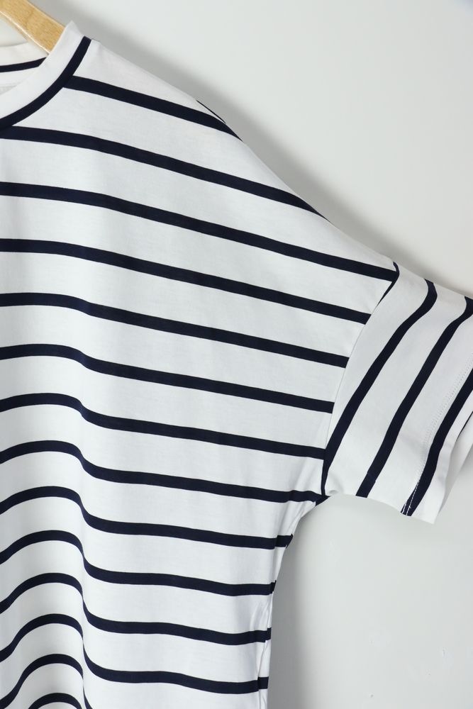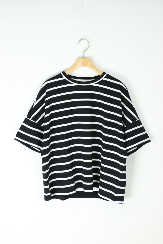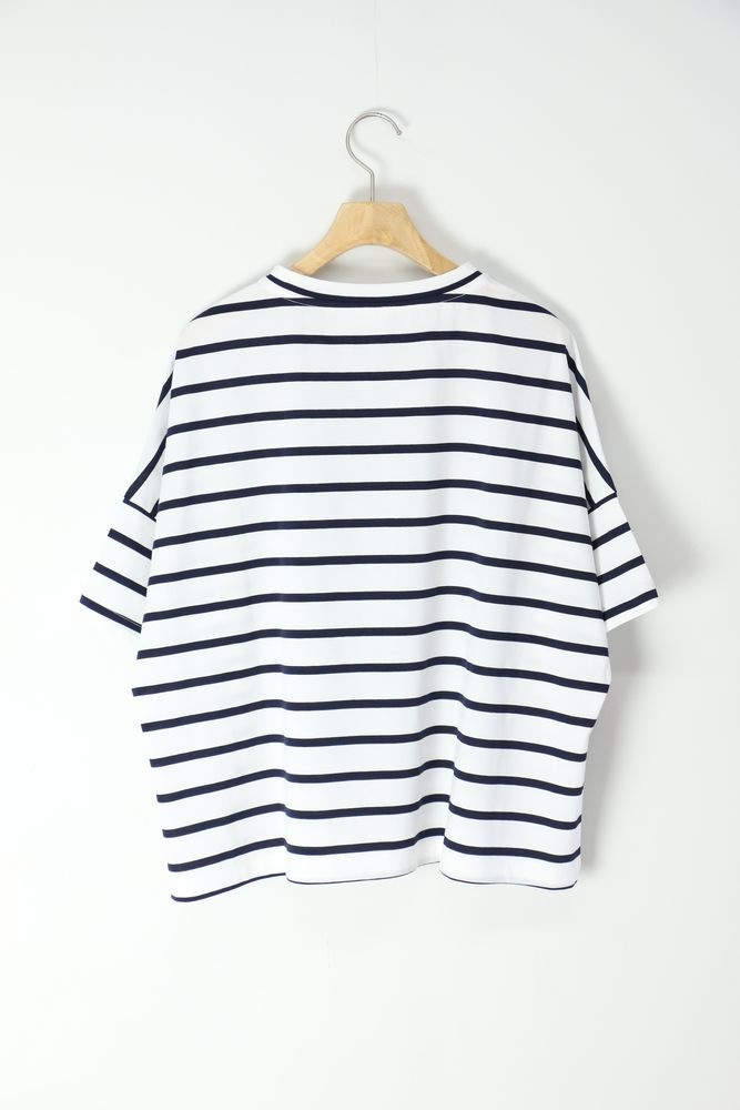 ゆったりとしたシルエットに、遊び心あるボーターで表現。